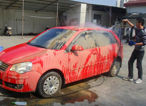 (2)高壓水槍洗車:高壓水槍的水壓十分的大,對(duì)車漆的損傷非常的大,并且這種洗車方式也非常的浪費(fèi)水資源,在我們的很多地方都明令禁止使用高壓水槍開設(shè)洗車店。